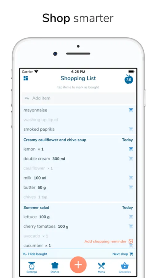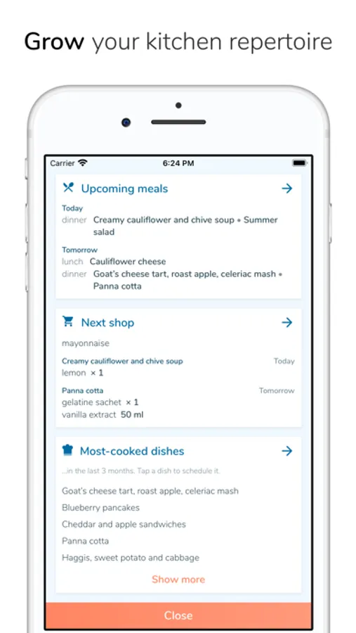 • Realtime shared accounts: your meals, dishes and shopping list are shared between you and your housemates and update in realtime.