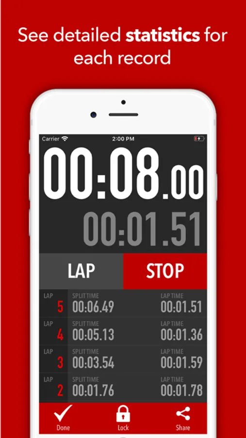 Super Stopwatch is a stopwatch application with customisable events. Events are useful when you need some notification at a specific time and you can't look at the stopwatch. Events can be spoken, play sound or vibrate at specific time. Events can be also configured to announce you stopwatch time or lap time. Events can be repeated or fired only once. Events can be timed from start of stopwatch or from start of current lap. Super Stopwatch groups events into profiles. Switching between groups of events is made easy by selecting the active profile. All records are saved into history.