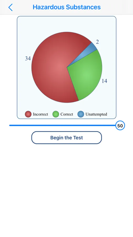 The app records your progress as you start giving practice tests.