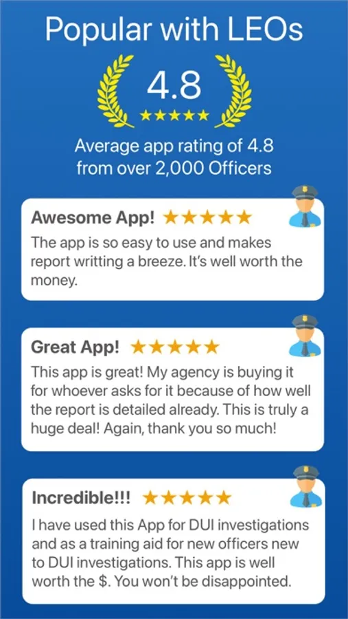 The app is well organized, easy to use and intuitive. It was built with input from law enforcement officers.