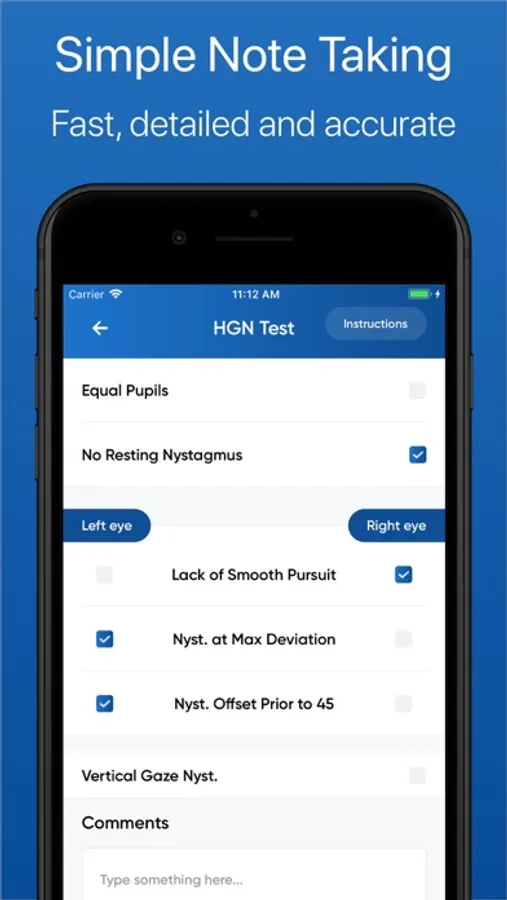 The SFST Report app was designed to let Law Enforcement Officers save time and efficiently take notes during field sobriety tests.