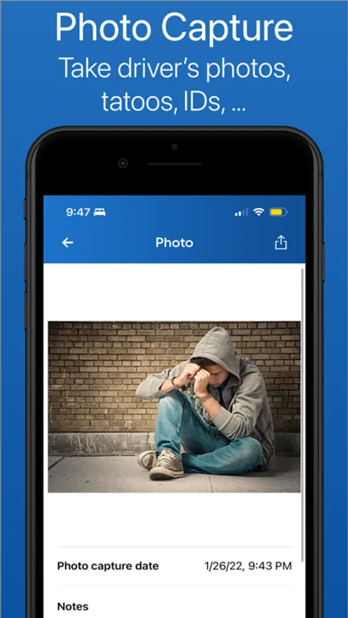 - Note taking for driver and vehicle information (driver name, gender, vehicle brand, license plate, ...)