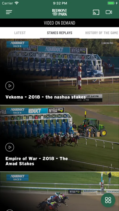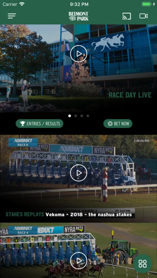 NYRA Now gives NYRA Bets members the ability to watch racing from NYRA tracks live in HD from a multitude of camera angles, including the side-view camera, head-on camera, finish line camera, or stretch-view camera. Additionally, fans can watch the saddling paddock to catch all the pre-race action, or utilize the trackside cameras to watch morning workouts. Plus, the Simulcast Center enables fans to access simulcast content from anywhere. Stream race replays from tracks across the nation, look ahead to feature races and access entries and results.