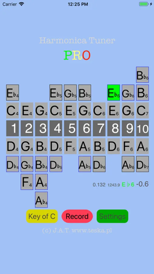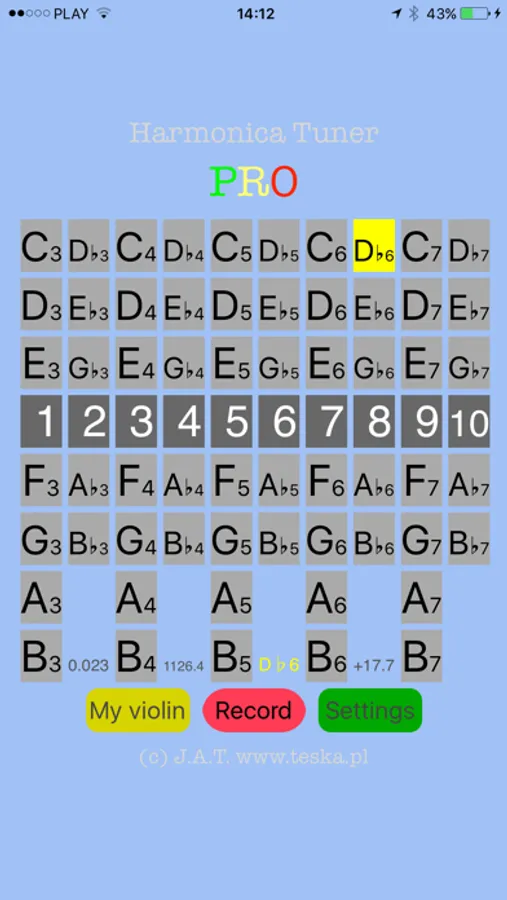 2. If the sound is harmonica's note, th en the note lights in yellow, red or green color. It depends on accuracy of the sound.