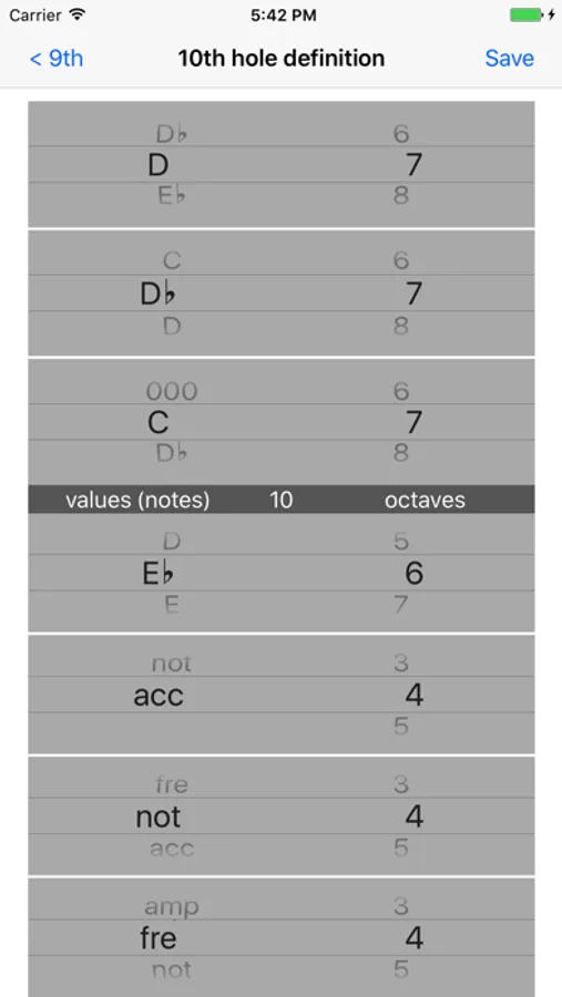 @harmonicatuner is for users who play many different kind of harmonica (not only key of C). @harmonicatuner allows to define your own harmonica and setup value of parameters. In the @harmonicatuner you may define showing amplitude (amp), frequency (fre), notes (not) and accuracy from sound pattern (acc).