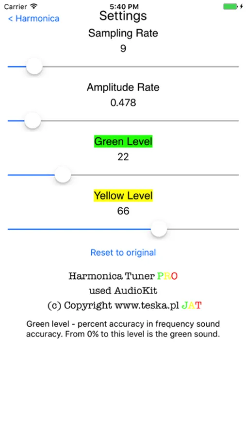Application Harmonica Tuner PRO (@harmonicatuner) fills the gap in the App Store for tunning sounds for harmonica players. The application has precise, simple and fast algorithm. Harmos: Key of C, A, D, G, E, F, Bb, B, Eb and possibility to define new one.