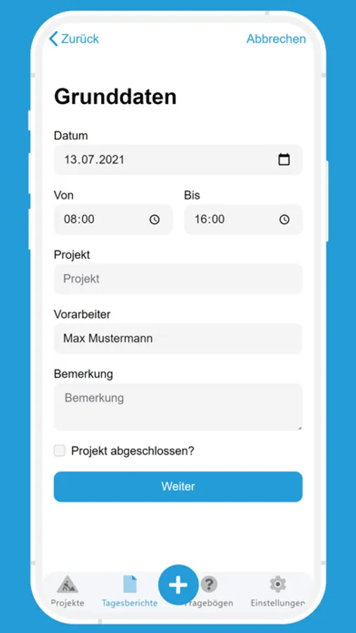 Nach getaner Arbeit können Deine Mitarbeiter auf einem iPad Tagesberichte erstellen und sofort absenden. Der Tagesbericht ist im Büro sofort verfügbar. Die Stunden und Material werden auf die entsprechenden Projekte geschrieben. Außerdem werden die Stunden den Lohnstundenaufstellungen der Mitarbeiter zugeordnet. Nachweisarbeiten können ebenfalls direkt auf der Baustelle auf dem iPad durch den Auftraggeber quittiert und abgesendet werden. Ist das Projekt abgeschlossen, kann zudem die Kundenzufriedenheit direkt vor Ort, mit Hilfe eines von Dir erstellten Fragebogen, in der App abgefragt werden.