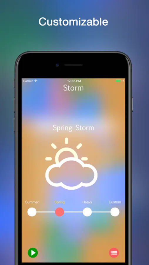 Normally storm apps are based on predictable audio loops, this goes beyond that and dynamically creates the storm based on presets or you can customize the storm yourself using the intutive controls. Storm gives you a constant storm to help you sleep, study, relax or provide you a way to hide your tinnitus and let you rest!