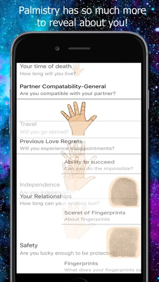Palm Guru will easily give you amazing character readings, and tell the fortune of your friends –simply and mysteriously from their hands.