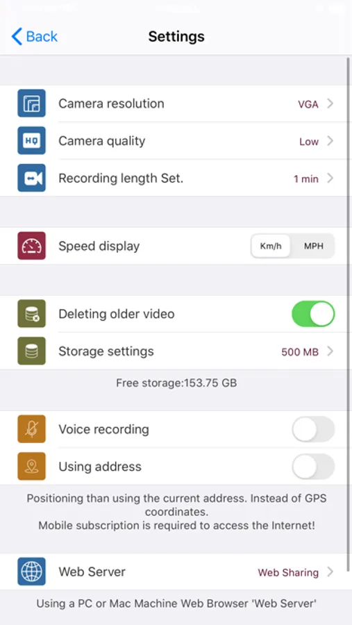 The video you can see the display speed and GPS coordinates, or if it is enabled address will display the current road or street names during recording.