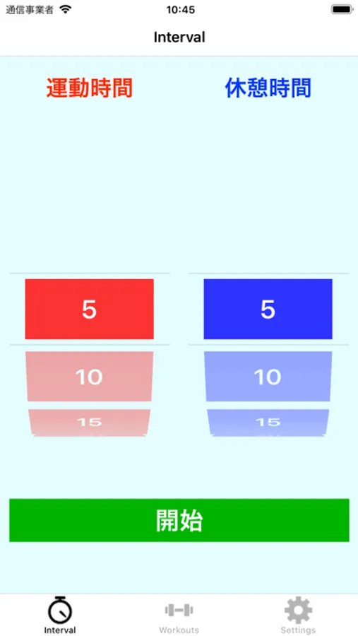 複雑な設定は一切ありません。エクササイズの時間と休憩時間を設定してスタートを押すだけです。