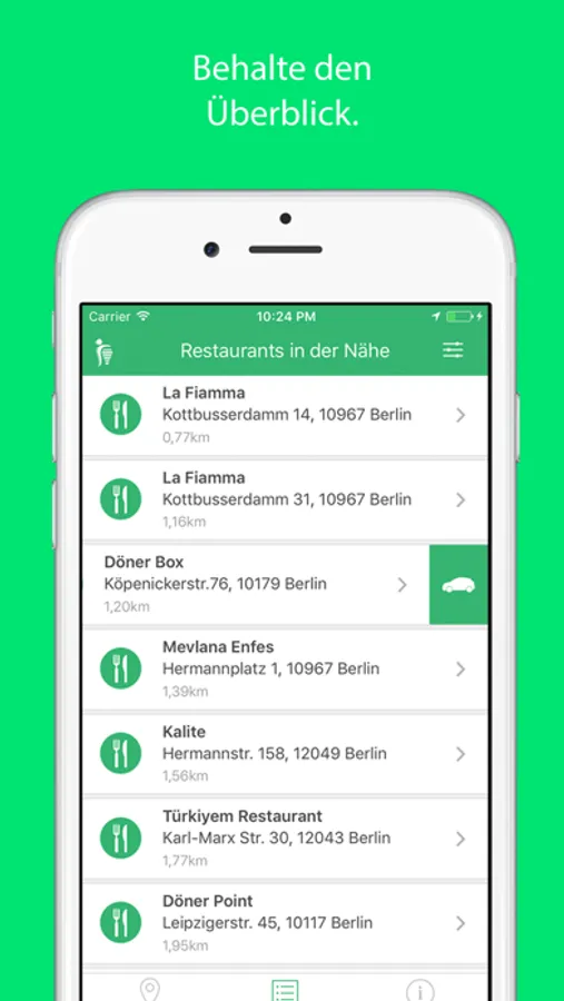 • Finde alle nötigen Informationen zu einem Geschäft und rufe bei Bedarf direkt von deinem iPhone aus an