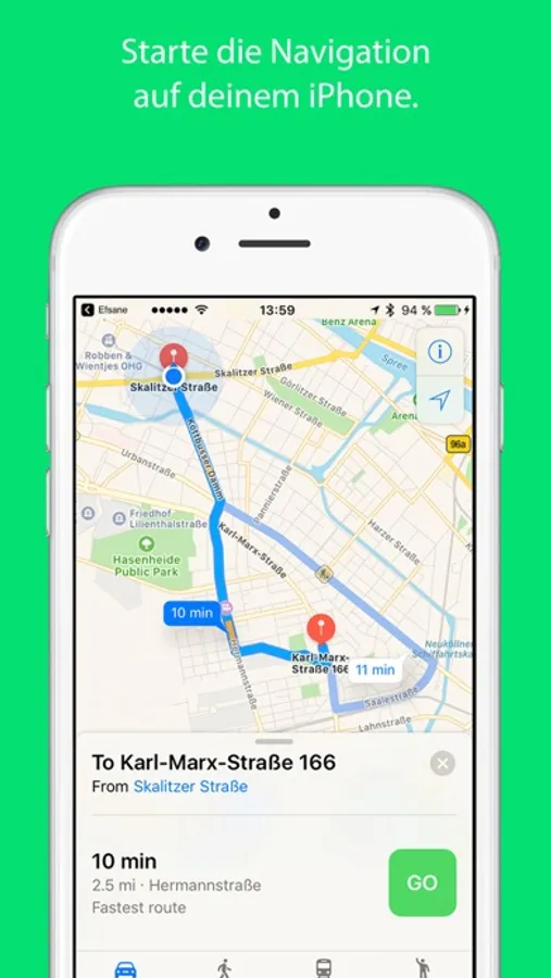 • Lass dir über GPS und der Unterstützung von Apple Karten die Route zu Geschäften beschreiben