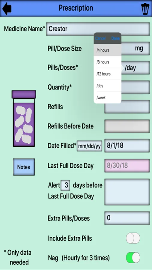 13. Pick number of days before last pill for alerts.