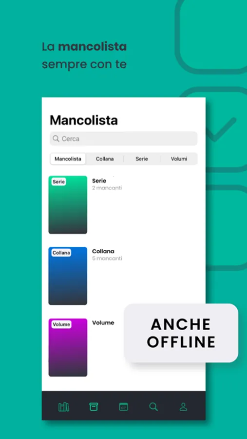 Organizza la tua collezione e mettila in tasca. Porta la tua mancolista sempre con te (anche offline).