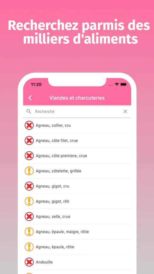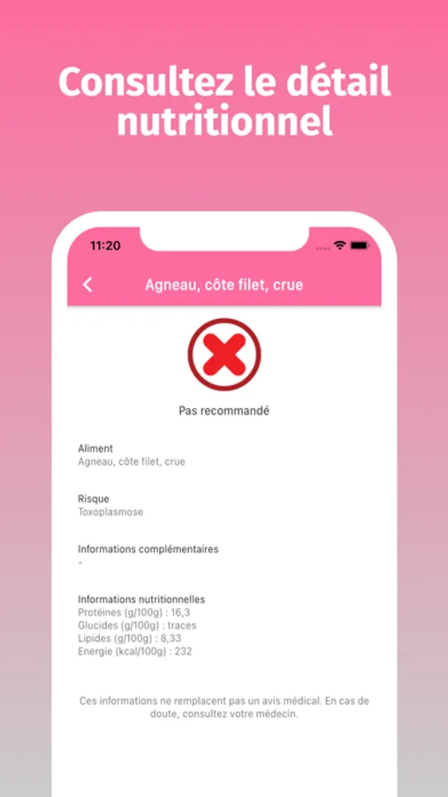 "Enceinte : que puis-je manger ?" Une application simple et efficace pour savoir quels aliments sont autorisés ou déconseillés pendant la grossesse.