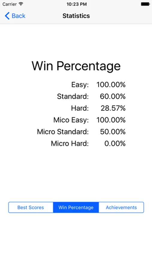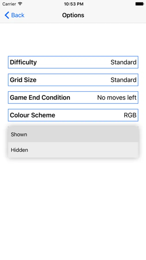 A one time in-app purchase is required in order to unlock additional game modes, color schemes, and app statistics. The full version of the game has two grid sizes for varying the strategy of play. Win/loss percentages are calculated for all difficulty types and grid sizes, as well as all time best scores, and a number of achievements.