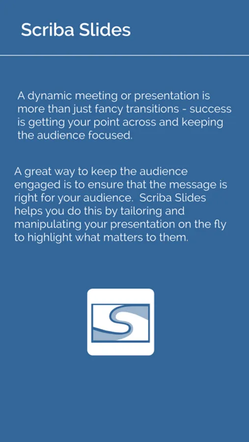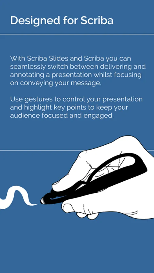 Scriba Slides is an intuitive app for delivering more interactive slide presentations. Paired with the Scriba stylus, users can seamlessly switch between delivering and annotating a presentation whilst focusing on delivering their message.