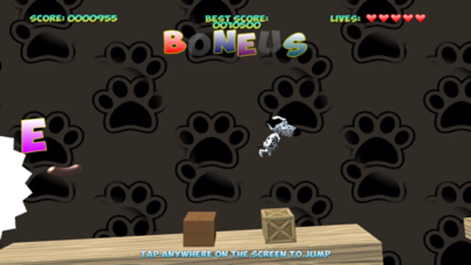 Tap the screen to help Spot get from plank to plank, and to collect points.