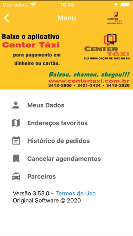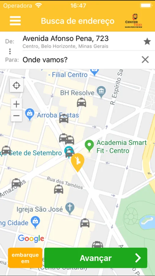 Center Táxi é uma aplicação simples e fácil de usar que permite ao usuário solicitar e agendar corridas de táxi.