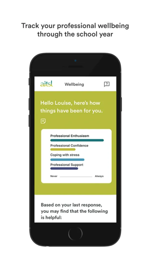 The Tracker feature allows users to regularly assess and monitor their professional enthusiasm, self-efficacy, stress and support.