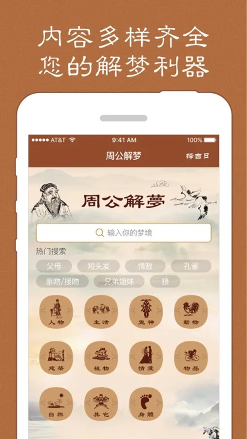 《周公解梦》是靠人的梦来卜吉凶的一本于民间流传的解梦书籍,共有七类梦境的解述。梦的文化在发展,结合西方弗洛伊德解梦理论,解释的梦境达到11种之多,并且还在续完善之中。