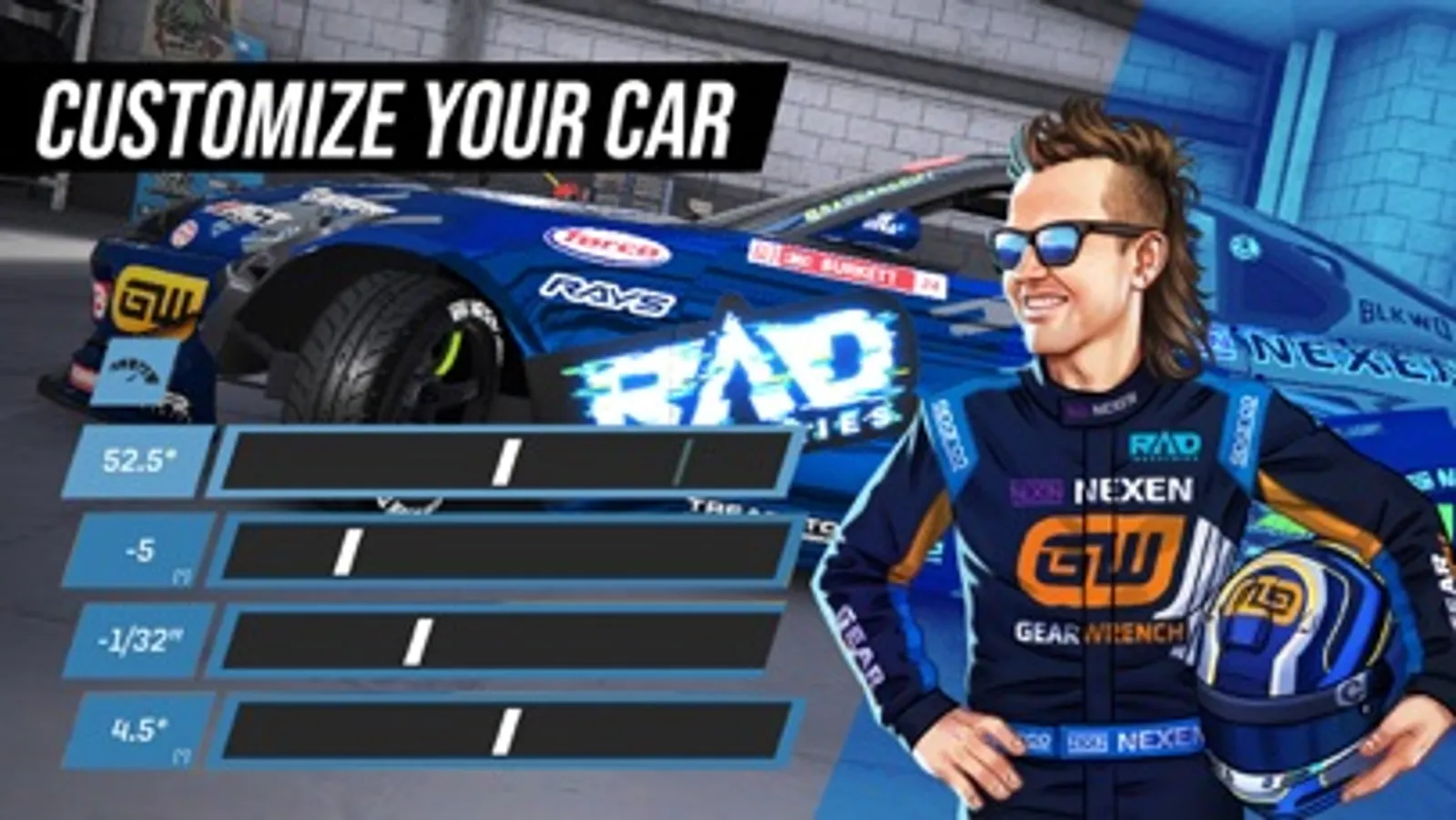 Build your car, customize your paint job, earn sponsors, and compete on the world stage in realistic ONLINE TANDEM BATTLES to become a DRIFT KING!