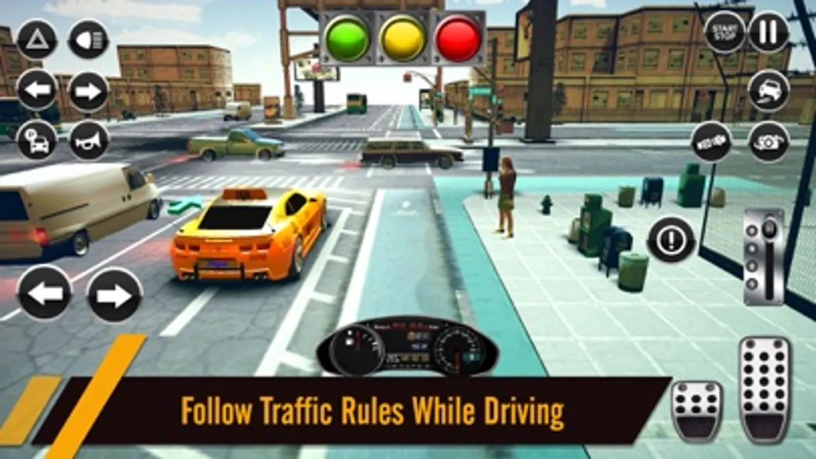 When playing this taxi driving simulator you need to follow the arrow on the map so you know where in the big city your passengers are waiting for you. After the passengers will get in your taxi the cab meter will start to run and money will be earned if you drop the passenger on time.