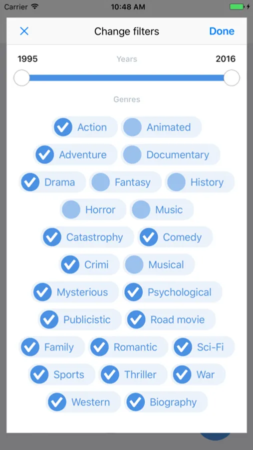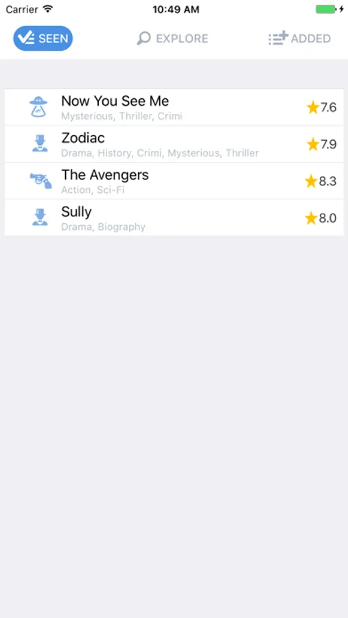 - If you've seen the movie, just tap the green "seen it" button, it will be added to seen list and won't show up again.