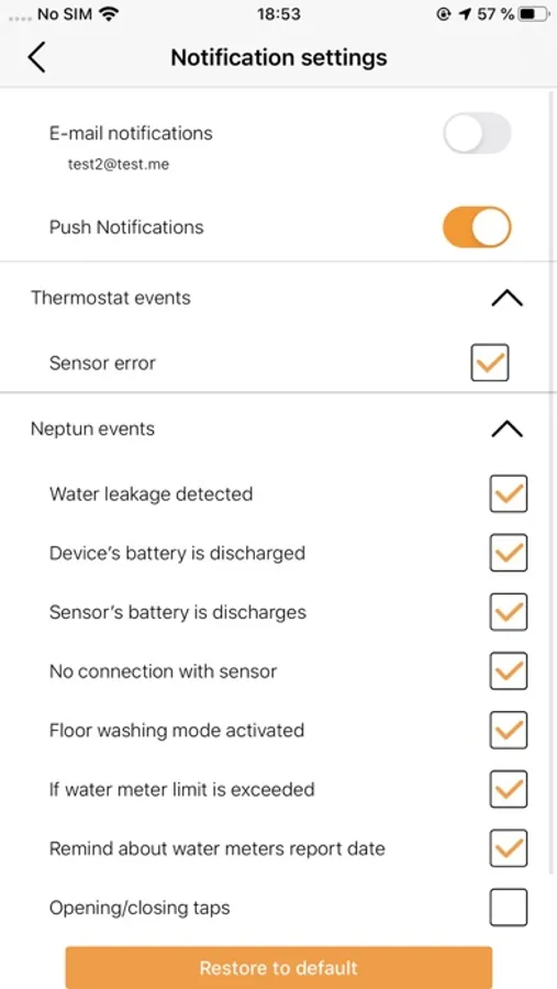 Your entire family can control the equipment at the same time. Security is enabled using a flexible access rights configuration. The app allows you to control and manage multiple locations at once (apartment, cottage, office, parents) and immediately receive push notifications or messages by e-mail about all events in your home.