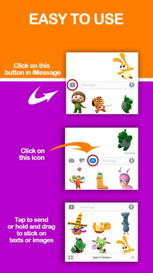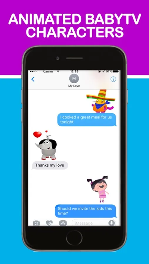Choose from over 45 BabyTV stickers and animated characters to send to those you you love