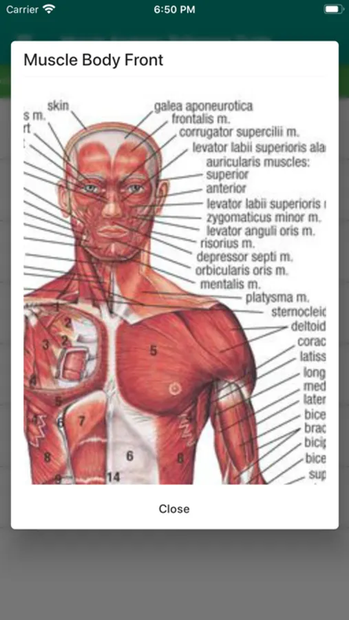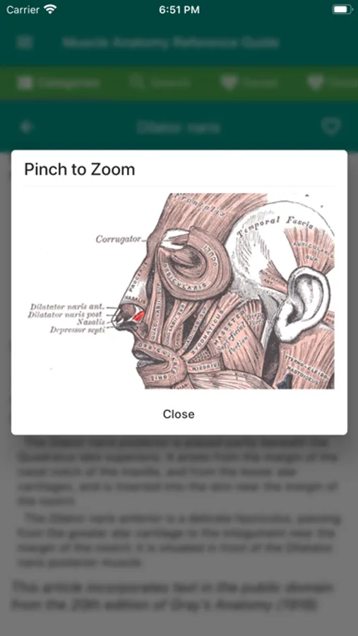 Each muscle article includes various images that when tapped on will show an enlarged version of the image allowing you to take a closer look at the muscle.