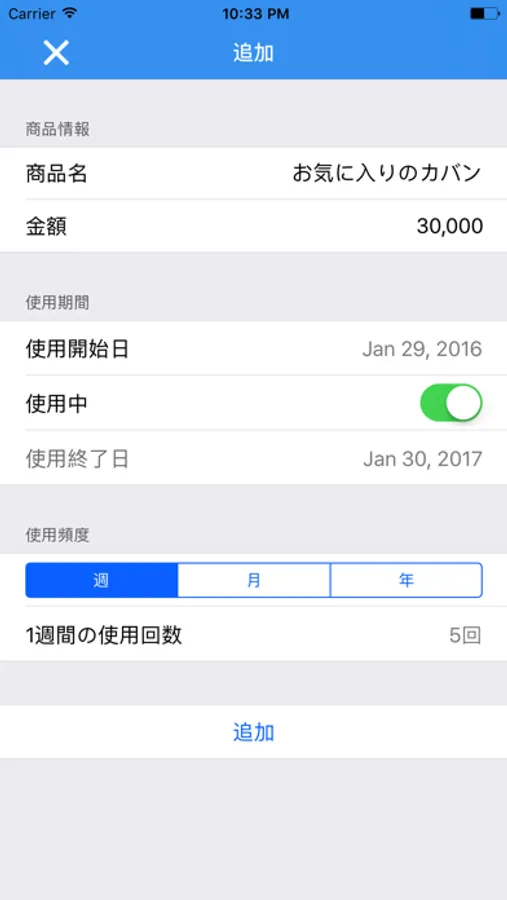 コスパ計算機は 買った物を使用頻度や使用期間に合わせて「一回あたりいくら」を自動で計算してくれるアプリです。