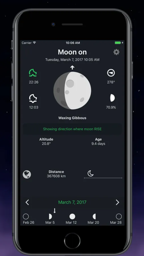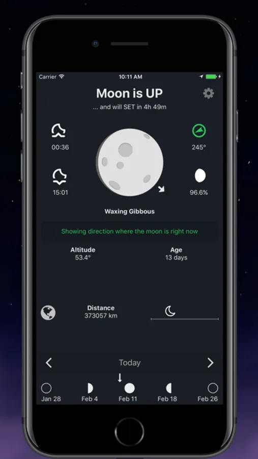 Moon Now was designed to provide you with the most useful and relevant tools for tracking the moon. The app has all the common data as many other moon apps, but also an integrated compass that let you easily point out where the moon will set and rise for any given day based on your location.