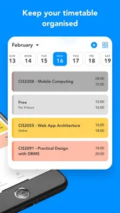 • Swipe through your timetable to stay on top of your university or college schedule.