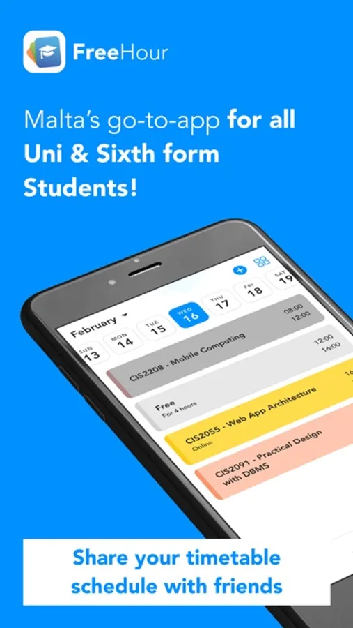 FreeHour is the go-to app for all college and University students who want to share their timetable schedule with friends and make student life more efficient.
