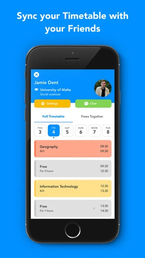 After downloading, just input or import your timetable into the app, add friends & share! You can now see when your friend are on campus along with the ability to view your friends full timetable in a glance.