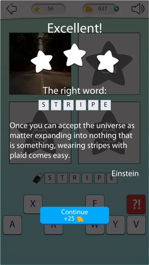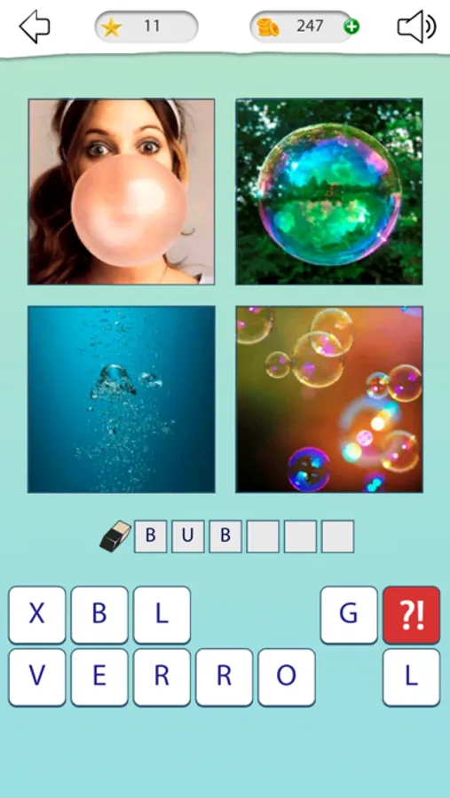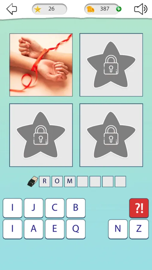 As soon as the game starts you will see 4 pictures and letters. Find the common idea among the photos-this is the word you are thinking about. Enter it using the available characters.