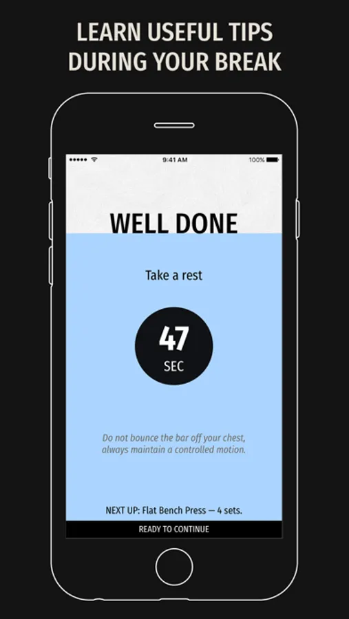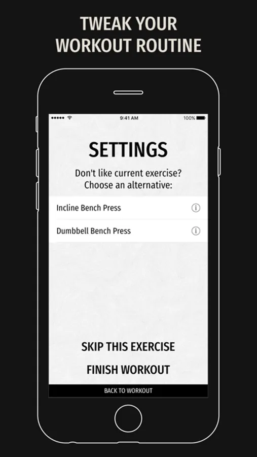 You don’t have to be a professional bodybuilder and spend hours studying exercises. The app already comes with a fixed workout routine, specifically designed to make the time you spend in the gym count — to make you stronger and healthier.