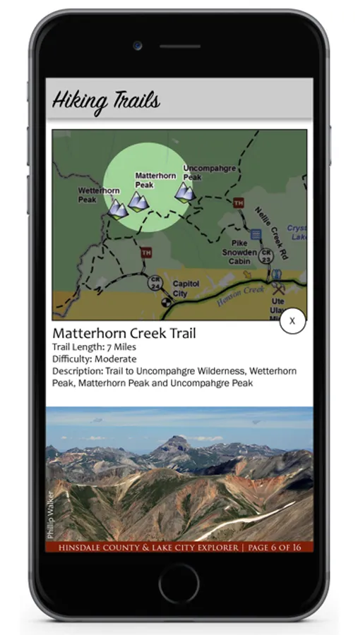 The Lake City, CO - Hinsdale County app is your resource for exploring the area. Available to use without the need for an Internet connection, it's the perfect companion for hiking and driving across the country. Beautiful photography by local photographers also showcases the beauty of the area.
