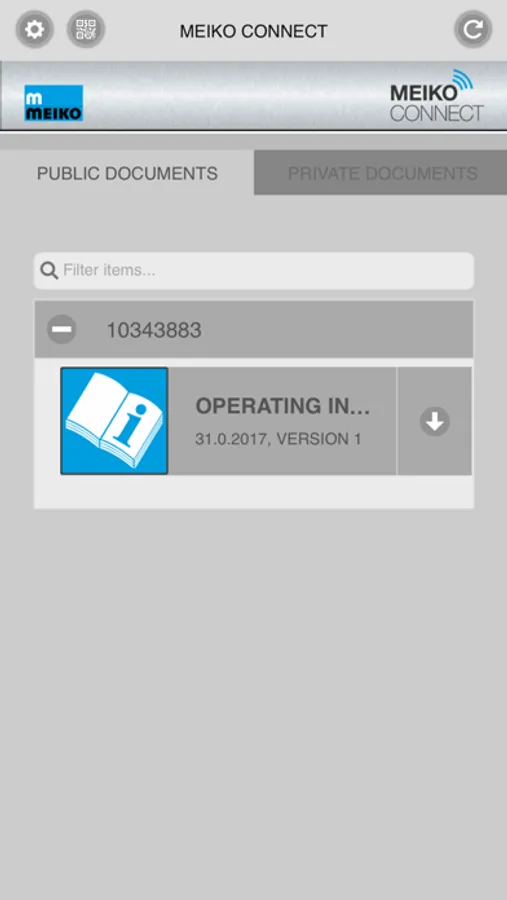 The free MEIKO Connect app provides an easy way to access the documentation of any MEIKO machine from any location at any time. To access the digital documentation for a specific MEIKO machine, simply scan the QR code linked to the machine's serial number. The new digital content includes the following types of documentation.