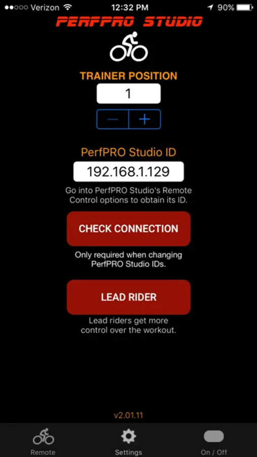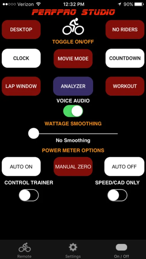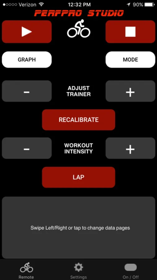 The PerfPRO Studio Remote Control App is the perfect add-on for PerfPRO Studio users. Allowing you to control the workout and view data screens for each rider display via WiFi. With the remote you may start/stop/resume workouts, adjust resistance for one or all trainers, change data displays for any display as well as toggle on/off a number of the options built in to PerfPRO Studio. It also allows you to adjust how your power meter may be used with your trainer rather than using the Windows menus on your computer. This remote pretty much replaces all previous remote control hardware that was either included with your trainer or purchased later such as any ANT+ remote control. And because the connection is WiFi there is no delay when using the remote and the range matches that of your iOS device.
