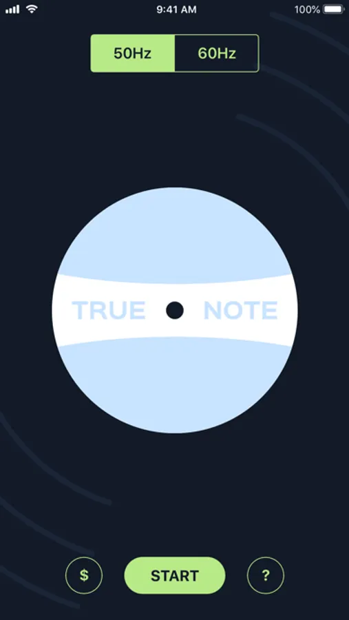 4. Tap "START" in the True Note app and shine the flashing LED light from your iOS device onto the strobe disc
