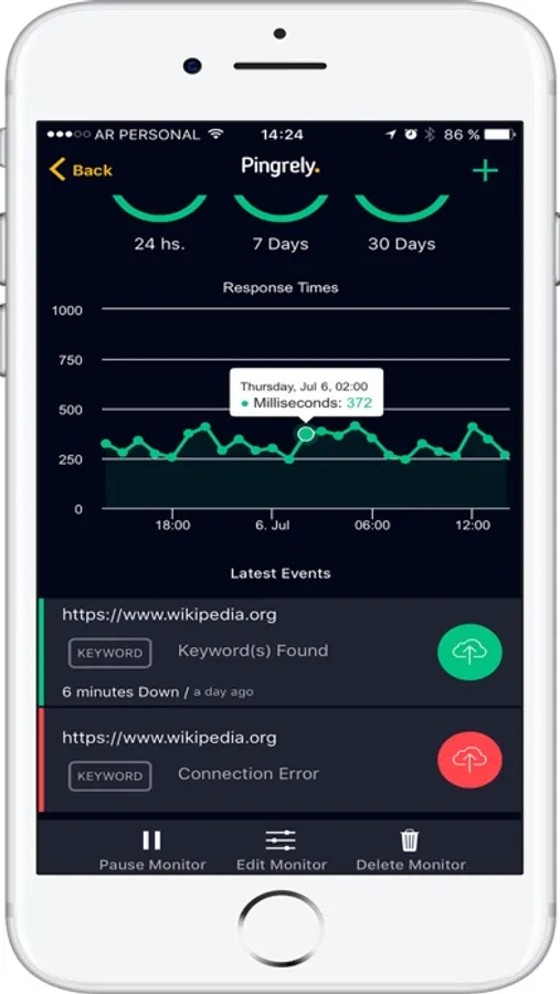 Pingrely has monitoring servers in all continents that allow testing your Websites & Servers with a frequency of 1 minute, 365 days a year, from all over the world where you are. This monitoring is done with a double-check to filter out false positives. In this way you'll be the first to know about any incidence, being able to work on the problem as soon as possible.