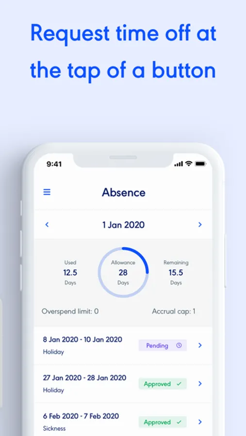 - Request time off and see your remaining holiday balance