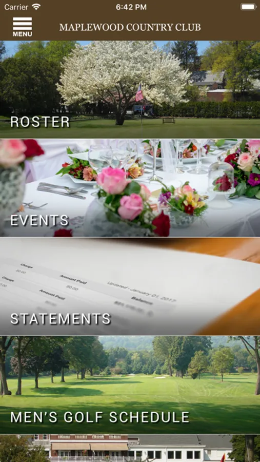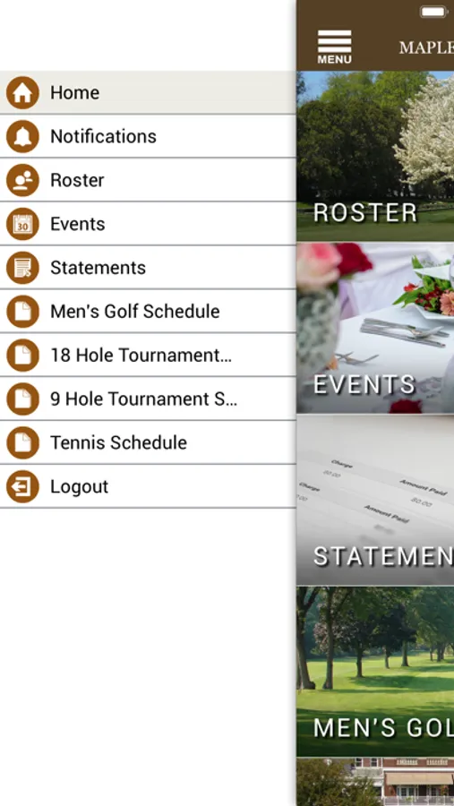 Delivering the ability to connect the Maplewood Country Club to your mobile device, the Maplewood Country Club app provides members with the ability to view their Statements and register for Events. Use the Roster to connect with other members and receive notifications on upcoming club events, all by the way of your handheld or tablet.