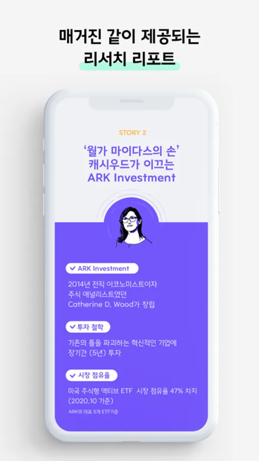- 리서치 리포트를 매거진처럼 제공