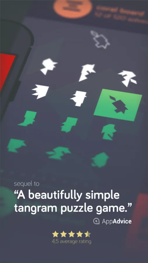 This puzzler is a sequel to tangram!, my previous interpretation of tangram puzzle game with 1M+ downloads, 4.5 rating on average. Since the era of the first iPhones, it has hit the top of the list in numerous countries.