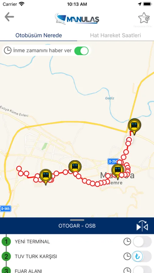 Manisa şehrindeki Otobüs hatları ile ilgili ihtiyaç duyduğunuz bilgilere mobil ortamda erişilmesini sağlayan uygulamadır.
