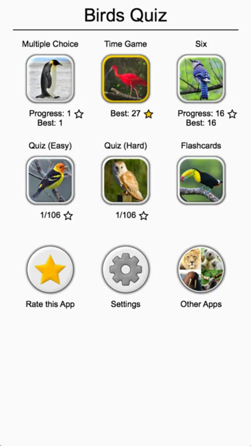 * Flashcards (a learning mode to browse through all available bird pictures)